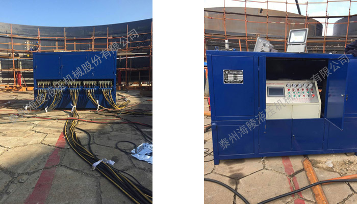 我公司生產(chǎn)制作的成套倒裝提升液壓設備即儲罐安裝設備,主要用于協(xié)助各種大型儲罐、氣柜、電廠脫硫塔等鋼結(jié)構(gòu)、大型重物的倒裝提升焊接安裝。
