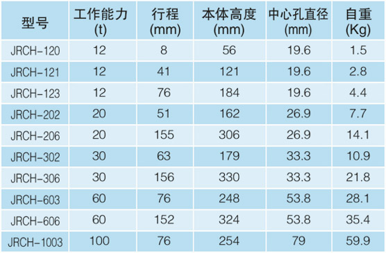 單作用空心張拉千斤頂JRCH系列: